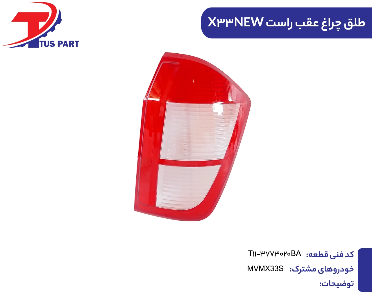طلق چراغ عقب راست ایکس۳۳جدید کدفنی T11-3733020BA